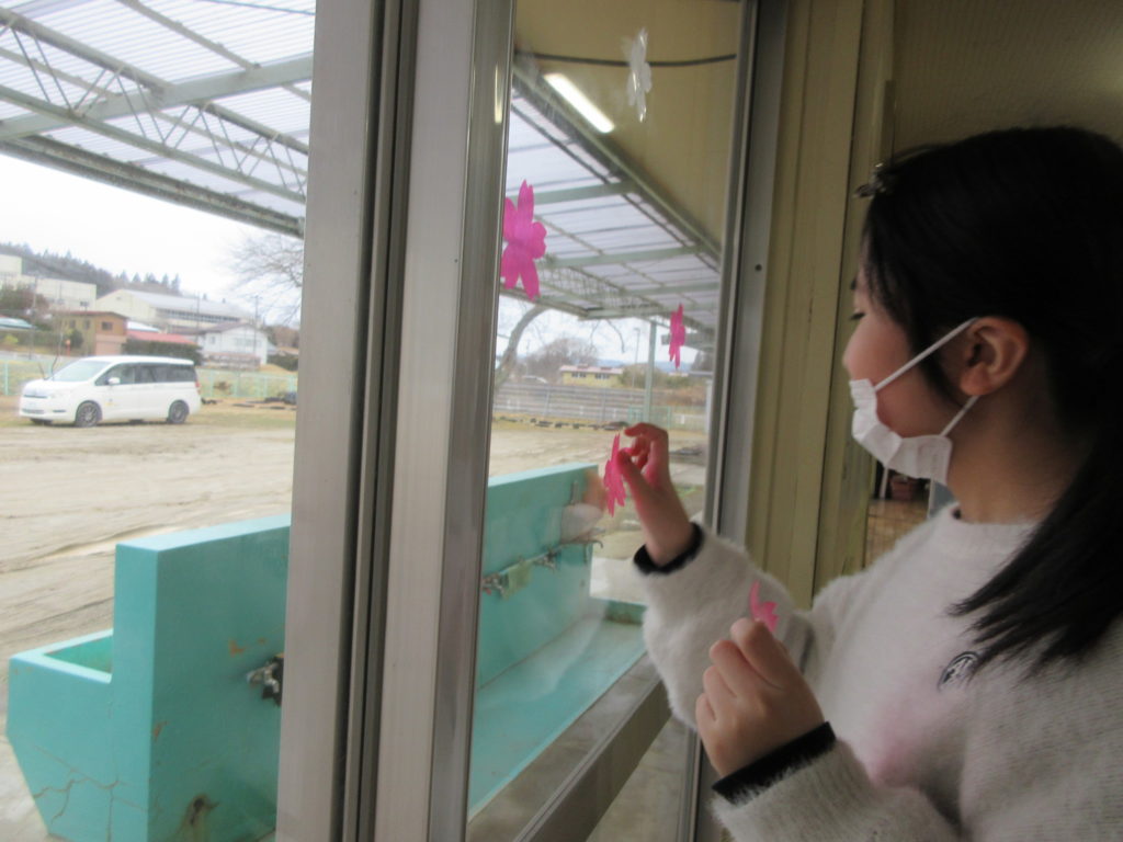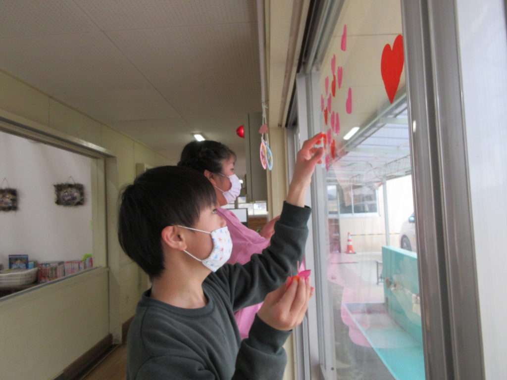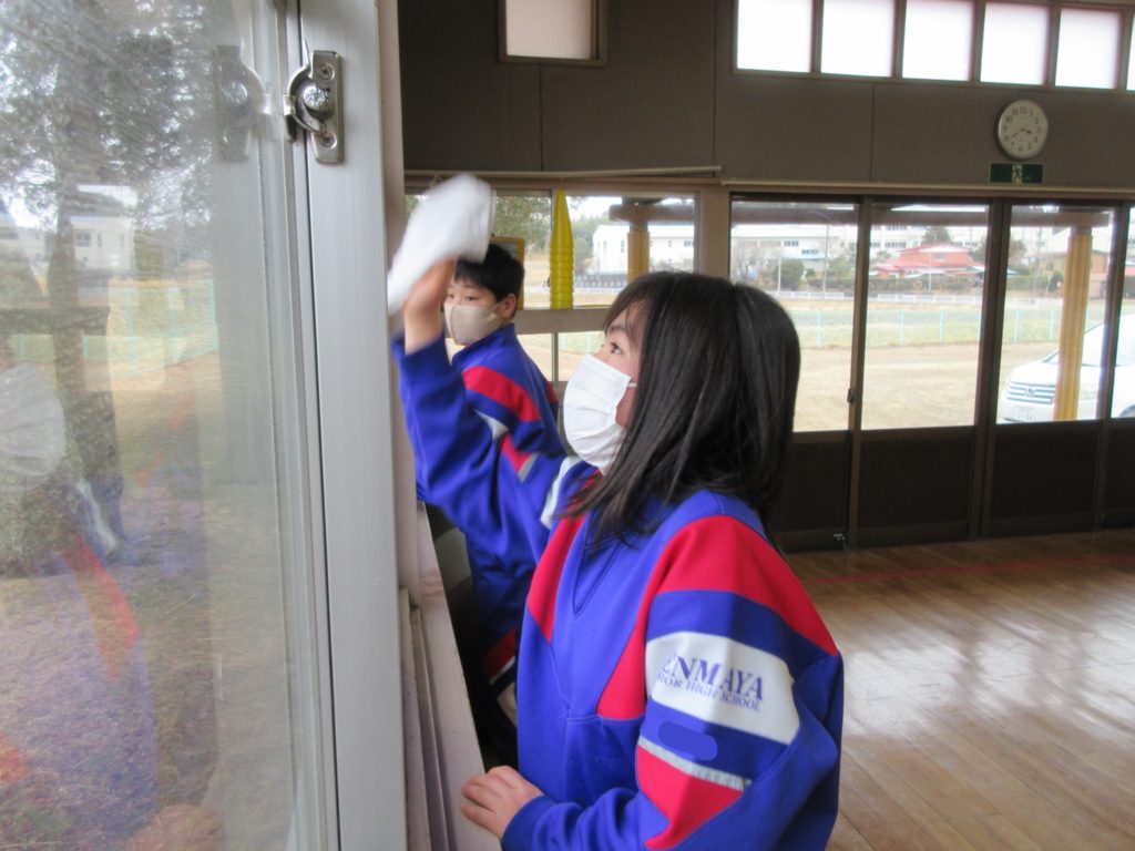 2026年2月27日(金) きれいにきれいに✨ 今日は月末恒例『ぴかぴかタイム』の日です😳 バレンタインデーが終わったので、ハートの装飾を剥がします👍 お次はふきんで窓拭きをします✨ すみずみまでぴっかぴかにお願いしますよ~😝💪 中学生男子のみなさんはジャンプをして、上まで拭いてくれました👏 きれいになった窓には、春らしい桜の装飾を貼りました🌸 はやく本格的な春がきてほしいね😚 お掃除&装飾、ありがとうございました🎶
