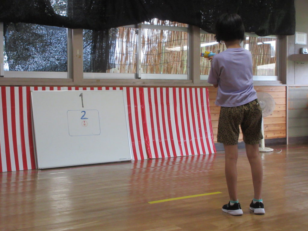 ホワイトボードの的に書いてある点数のところに当たったら、その数お菓子がもらえます🍬