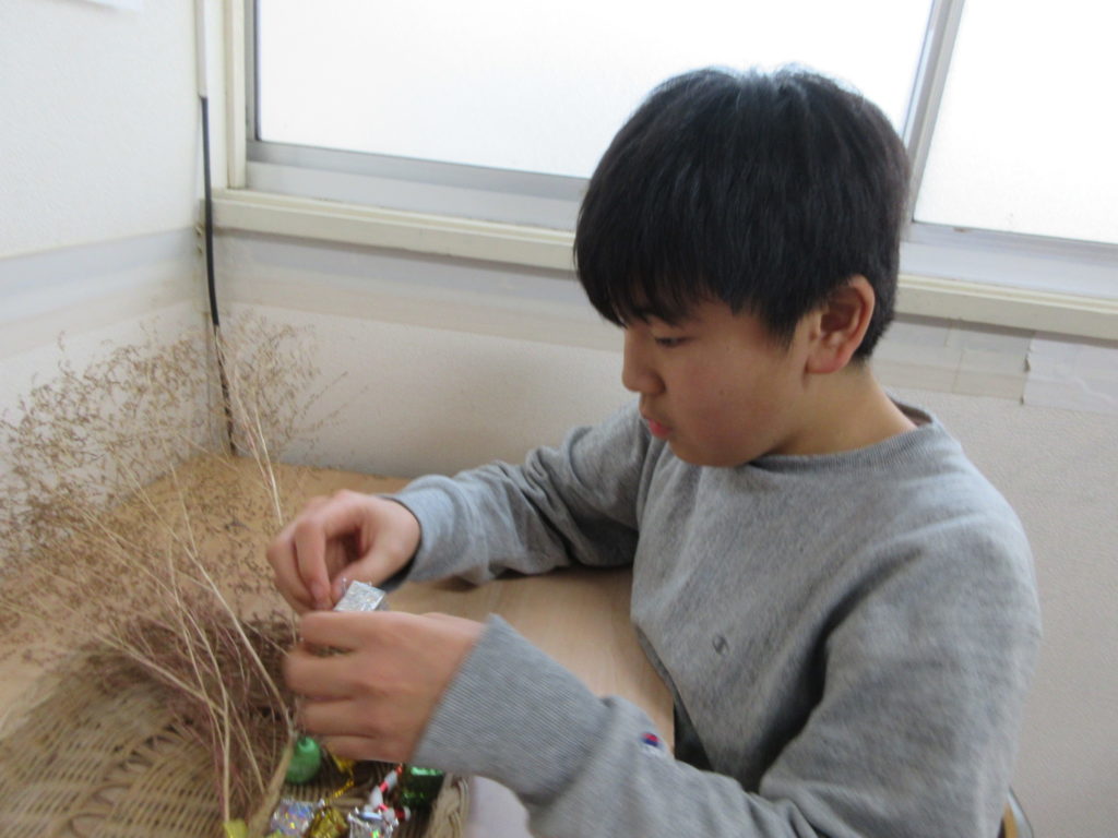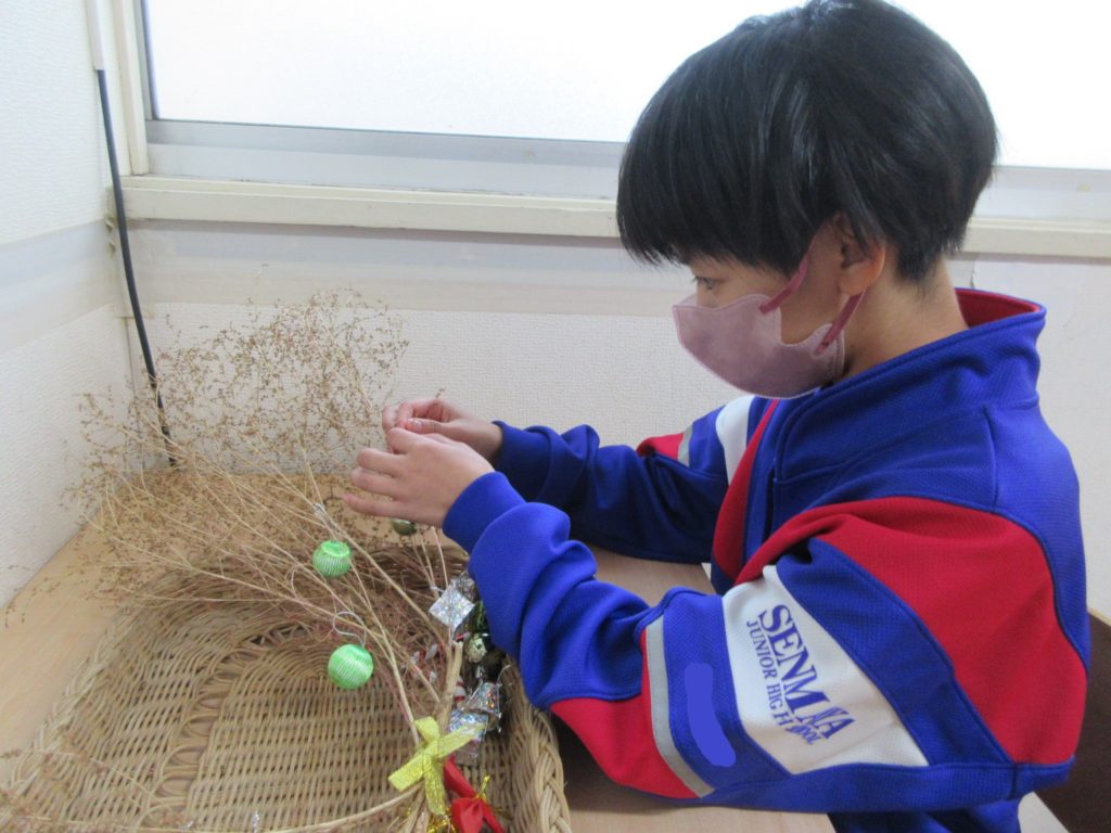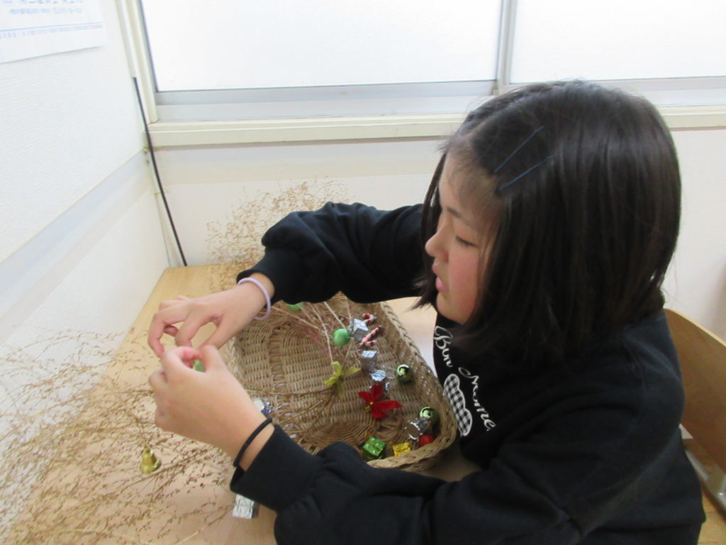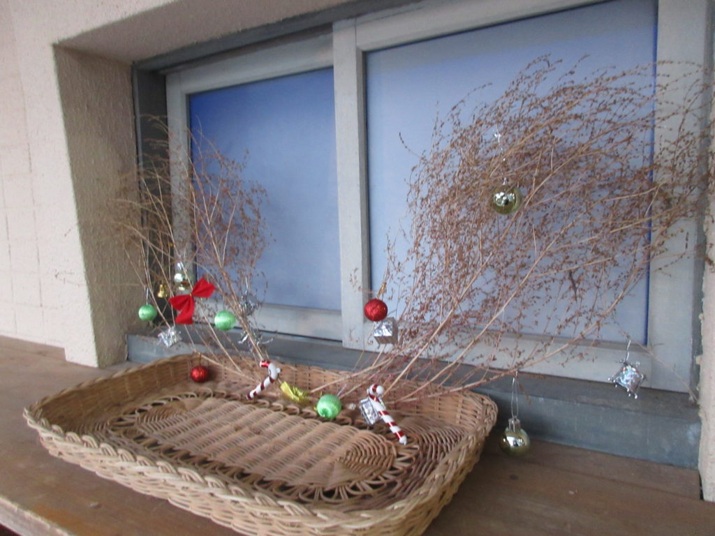 2025年12月8日(月) おしゃれな✨ 今日は以前とったコキアを使った活動です🌳 前回はほうきにしましたが、今回はクリスマス飾りにしてみました🎅⭐ バランスをみながらオーナメントをつけます😎 できあがったクリスマス飾りは入口におきました✨ お迎えのときにぜひご覧ください👀💓