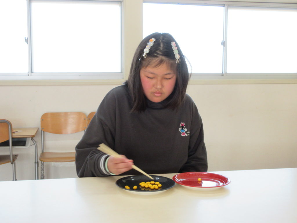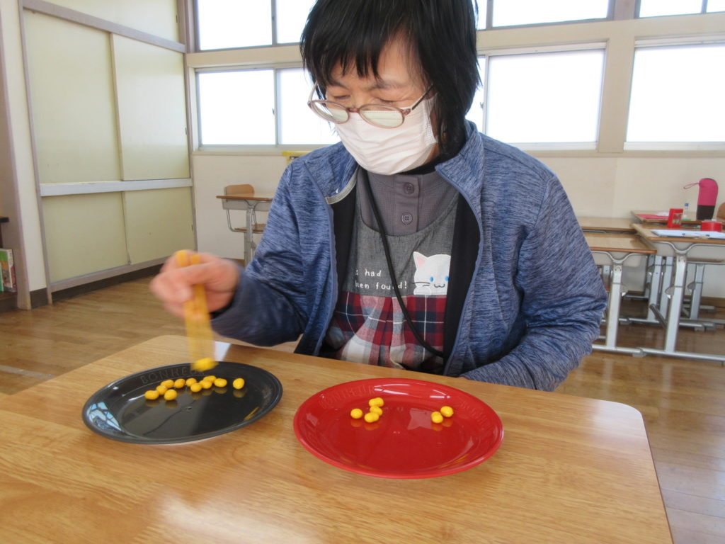 2026年1月24日(土) お箸で豆運びチャレンジ!! 今日はお箸を使って、豆をつまみ、お隣のお皿に移すチャレンジをしましたよ! 誰が一番早く、豆を移動できるかな?? 今回は、割りばしを使ってやってみました! 一番早かったのは~ yさん!43秒!!すごい!早い!!! あっという間に豆を移動できていました~✌ その後、スタッフもチャレンジ(*´艸`*) スタッフはプラスチックのお箸です。 つるつる逃げられてなかなかつかめず、大苦戦いたしました💦 でも楽しかったです♡ 次はどんなチャレンジかな?お楽しみにーー👋😊