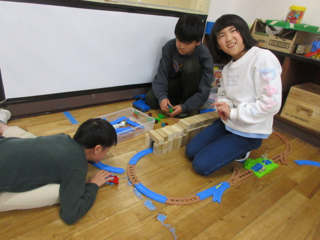 電車あそびではトンネルを積み木でつくり、工夫を凝らしていました✨