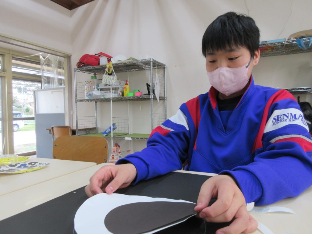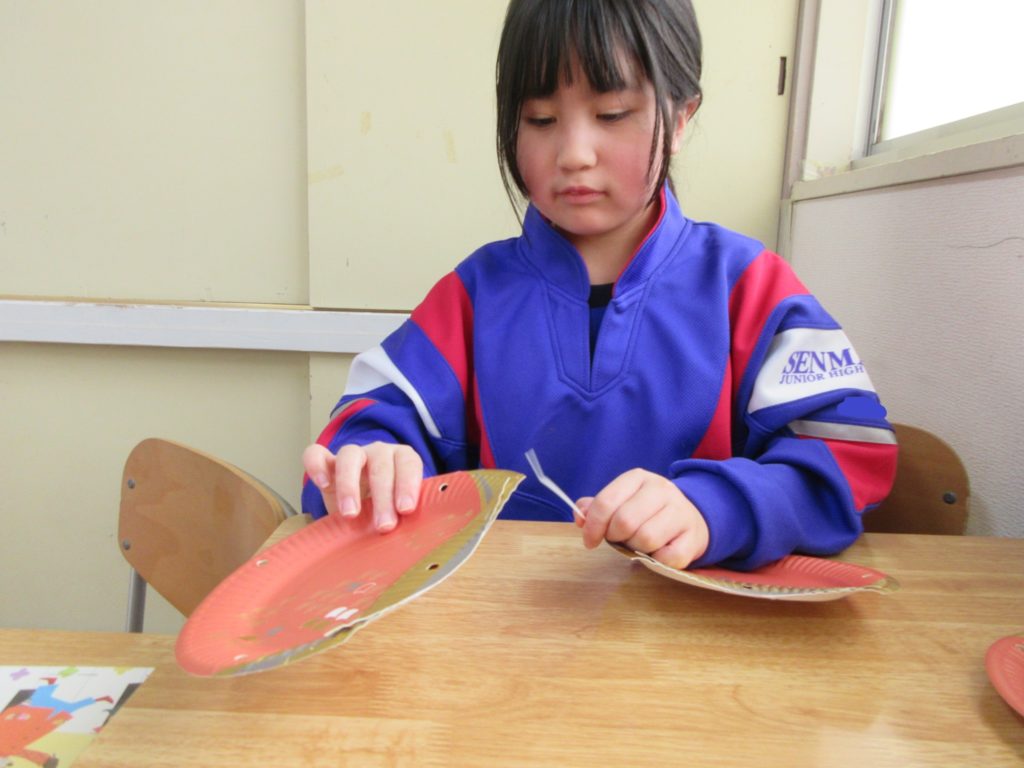 うろこに見立てた紙皿を、結束バンドでつないでいきます👐