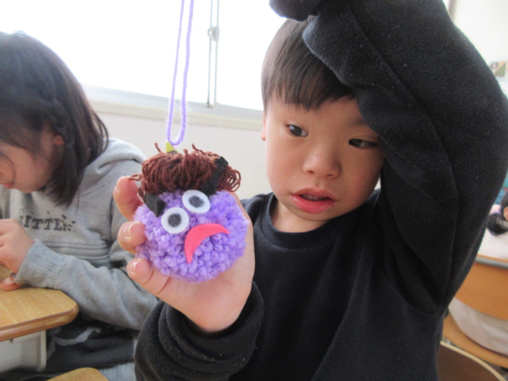 2026年1月26日(月) オニを作りました👹 節分が近いので、ポンポンメーカーで1人1人オニを作りました。 自分の中にいる、退治したいオニをイメージして作っています! ゲームスマホオニとか、おこりんぼオニとか、いろんなオニを作りました😊 それぞれ作ったオニを、節分の日に退治しますよ✨