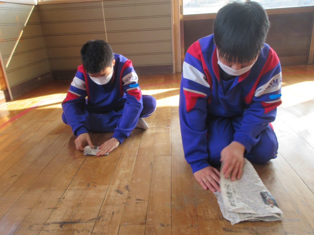 丸めた新聞紙が破れないように慎重に、慎重に伸ばしています👍