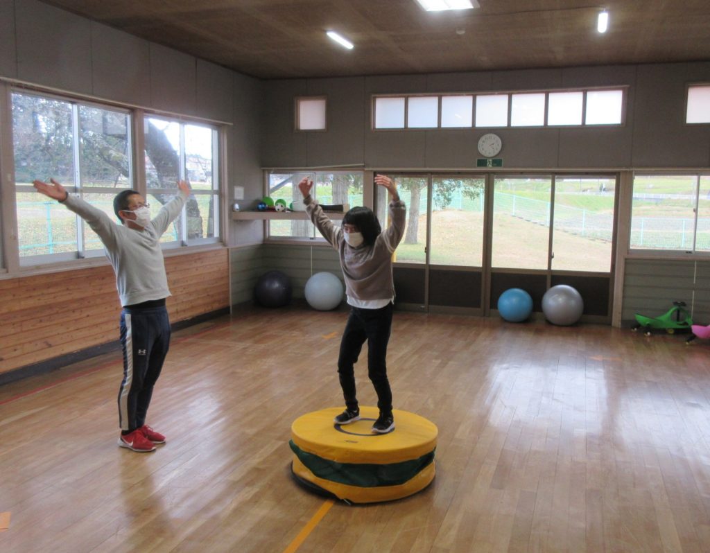 2025年12月1日(月) バランス👀 今日はバランス感覚が大切な活動をしましたよ🙃 一足お先に学校から帰ってきた小学生さんたちは、『トランポリン』に挑戦✨ 10回ジャンプをしたらポーズを決めます😍 中学生さんたちは仕切り棒で作った『平均台』に挑戦です💪 ぐらぐらしながらも、バランスを取りながらゴールしていました👏 体幹が鍛えられる2種目でしたね⚡ 観客のみなさんも応援をしてくれて、盛り上がった活動になりました🎶