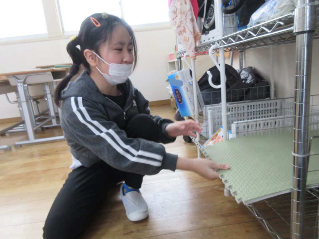 2026年3月31日(火) 新年度に向けて✨ いよいよ明日から4月🌸新年度のスタートです😌 ぴかぴかタイムの活動では、みんなが使う荷物入れの整理をしました✨ 中学生さんたちは前使っていたマットを新しい物に交換しましたよ⭐ 小学生さんたちはカゴを使っていたのですが、マットにチェンジ😚 カゴを折りたたんで新しいマットを敷きました👐 中学生さんたちにも協力してもらいましたよ~👏 整理整頓をして、すっきりした気持ちで新年度を迎えられそうです✨