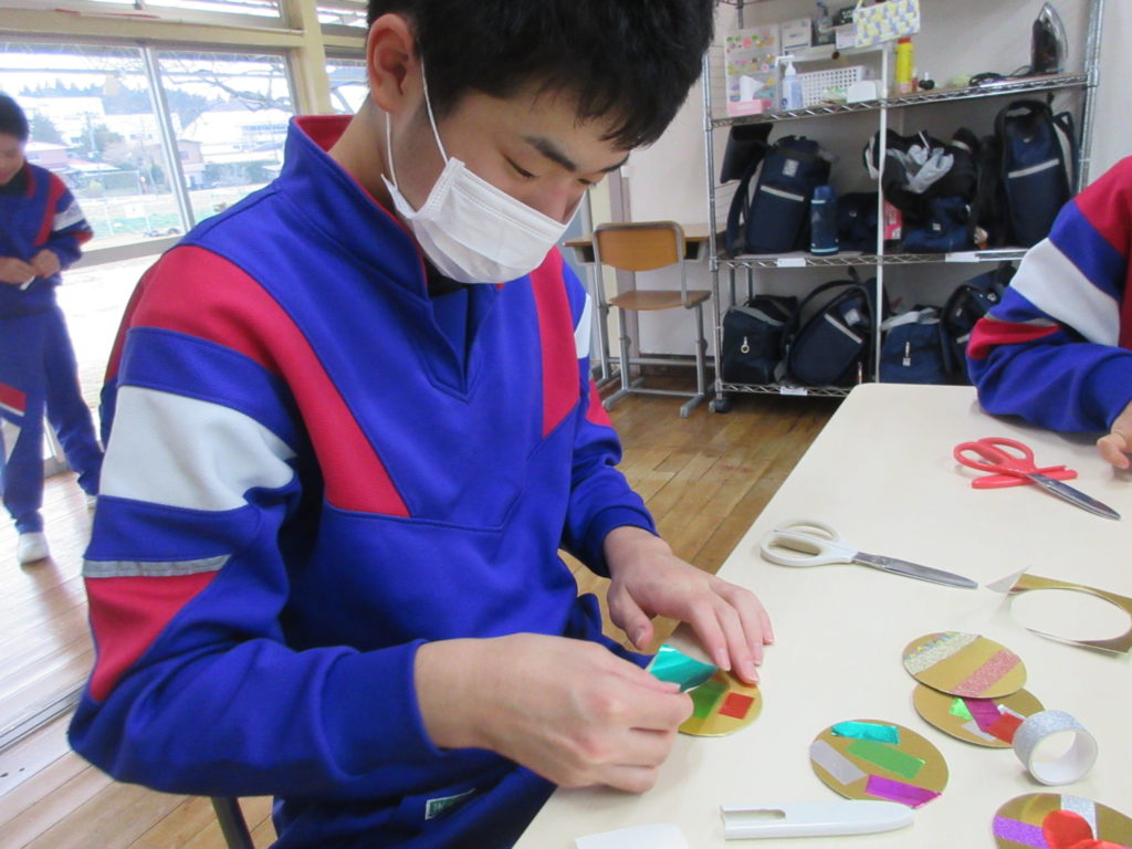 金色の台紙を丸く切って好きなマスキングテープをぺたぺた✨