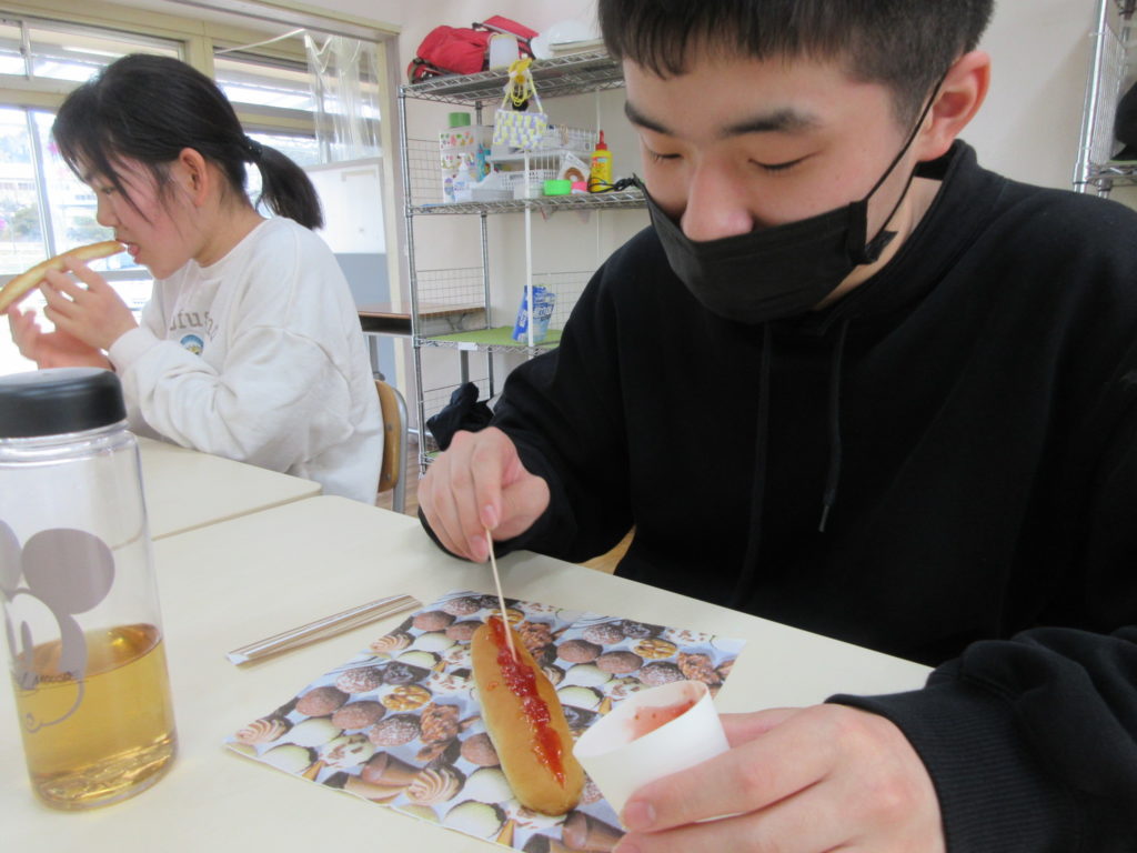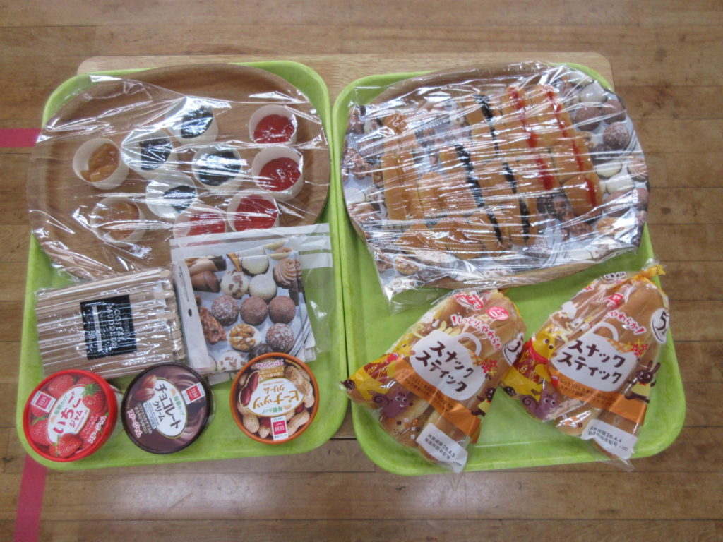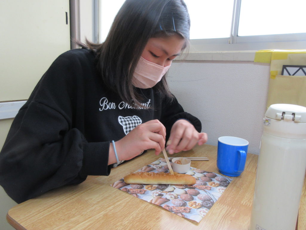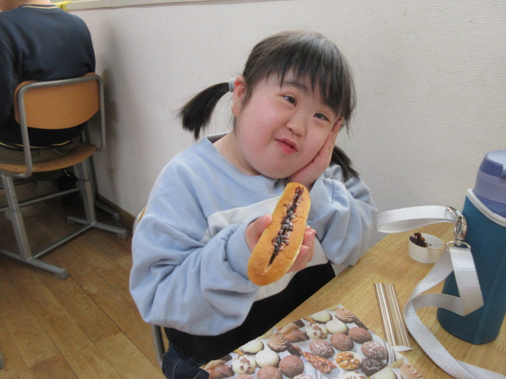 2026年4月2日(木) 楽しいおやつ作り😋 今日はみんな大好き『おやつ作り』の活動の日⭐ まずは、いちごジャム・ピーナッツクリーム・チョコクリームの中から好きなものを選びます🍓🥜🍫 選んだジャムやクリームをスティックパンにはさんで食べますよ~😋 へらを使って少しずつはさめてはさめて・・・👀 できあがったらいただきましょう👐✨ おいしさが伝わるいい表情をしていますね~😊 おかわりもあっという間になくなりました😲💞 甘くておいしいパンを食べて、大満足な子どもたちなのでした😋