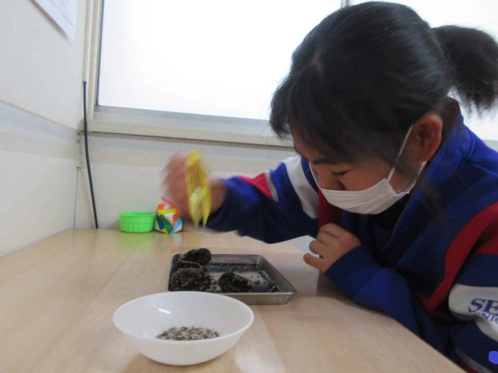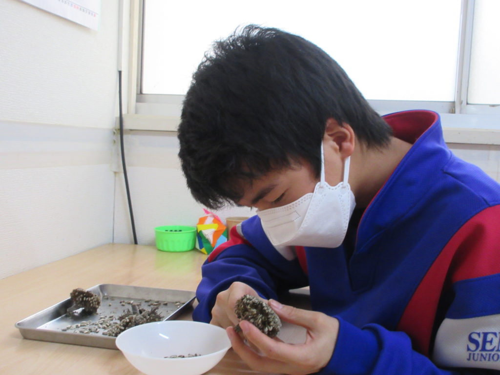 2025年11月11日(火) 種🌱 夏にきれいな花を咲かせてくれた”ひまわり”🌻 今日はそのひまわりから種をとる作業をしました👍 ピンセットを使って1つずつ丁寧にとっていきます👀 細かい作業ですがみんな集中して行っていますよ👏 この種はまた植えようかどうしようか、考え中でございます🤔⭐ 種取り作業を頑張った子どもたちでした😎💪